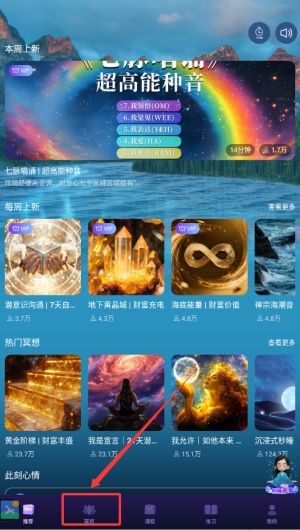 2、进入首页后,请点击“冥想”功能图标即可进入冥想专区页面。