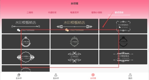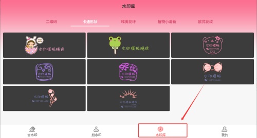 3、进入后可根据需要浏览不同类型的水印分类,点击选择相应类别。