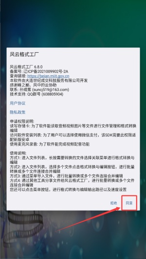 1、请先阅读并确认同意用户协议,之后即可点击进入软件主界面。