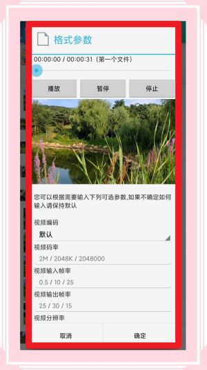 4、在“格式参数”界面中可自定义视频编码、码率、帧率和分辨率参数,满足不同格式转换和输出质量的需求。