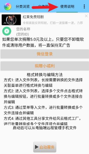 2、进入“使用说明”栏目后可查看详细操作方法,包括格式转换步骤、批量处理方式与功能介绍等内容。