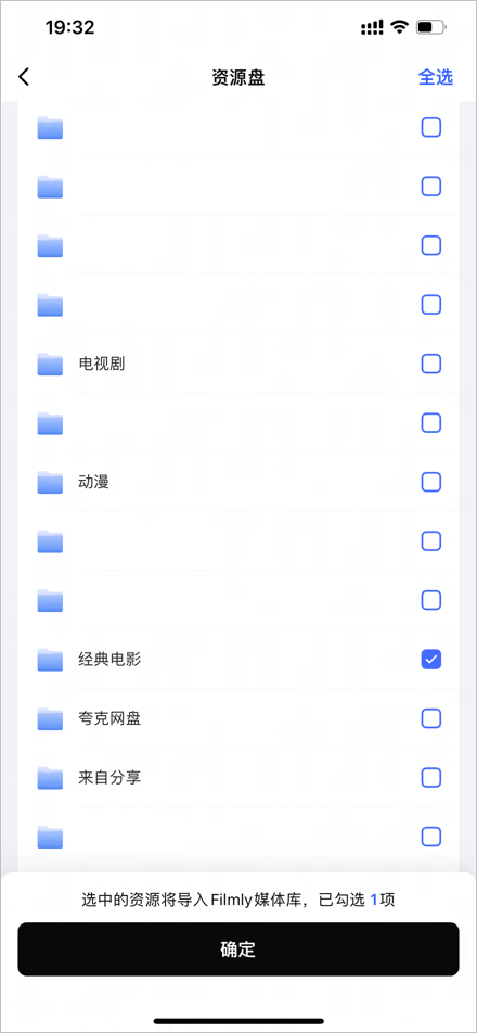 从已添加的网盘中,选择新的文件夹导入至网易爆米花。