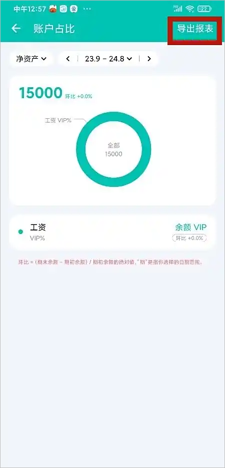 第二步:在资产趋势页面,点击右上角的账户占比进入。