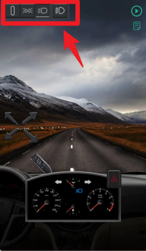 2、灯光模拟中提供多种灯光操作按钮,包括近光灯、远光灯和雾灯等,结合真实道路场景进行操作训练,帮助熟悉各种驾驶环境。