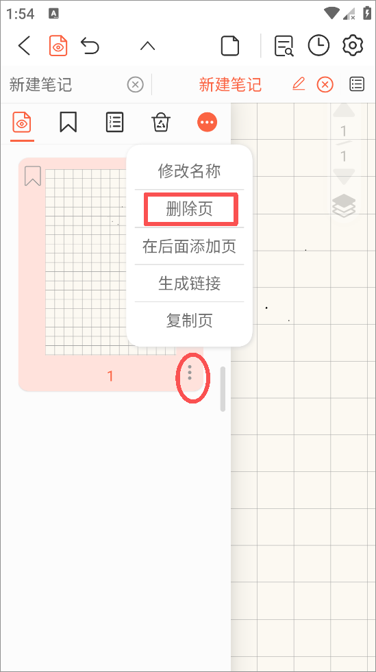 2、可以查看笔记的所有页面内容,点击要删除页面的右下角即可看到删除页功能