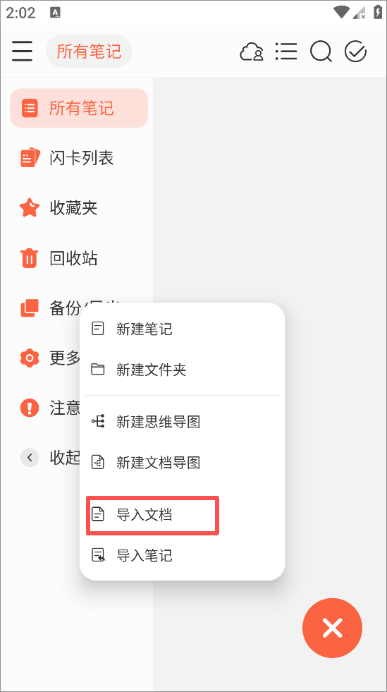 2、点击导入文档,除此之外还有导入笔记、新建文档、新建笔记等功能