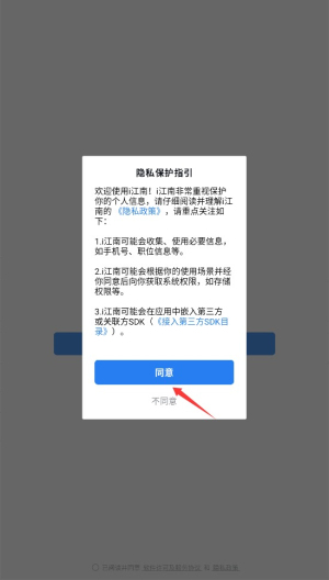 1、首次启动应用时,系统会显示用户协议和隐私政策,阅读后点击同意按钮进入主界面。