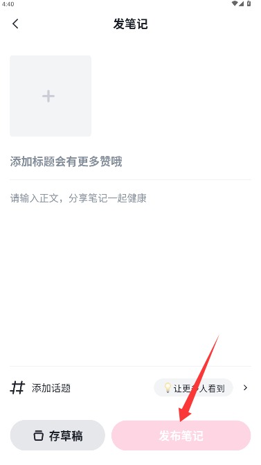4、上传相关图片并填写标题,输入正文内容并添加合适的话题标签后发布笔记。