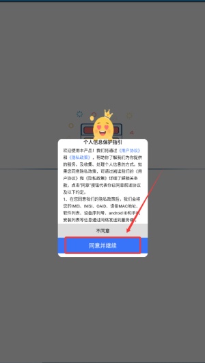 1、请阅读并同意用户协议,随后点击进入软件主界面开始使用。