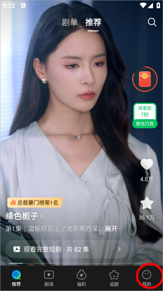 1、打开软件进入短剧播放界面点击右下角我的栏目