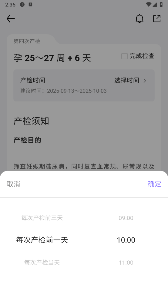 4、就可以自由选择什么时候提醒你产检了