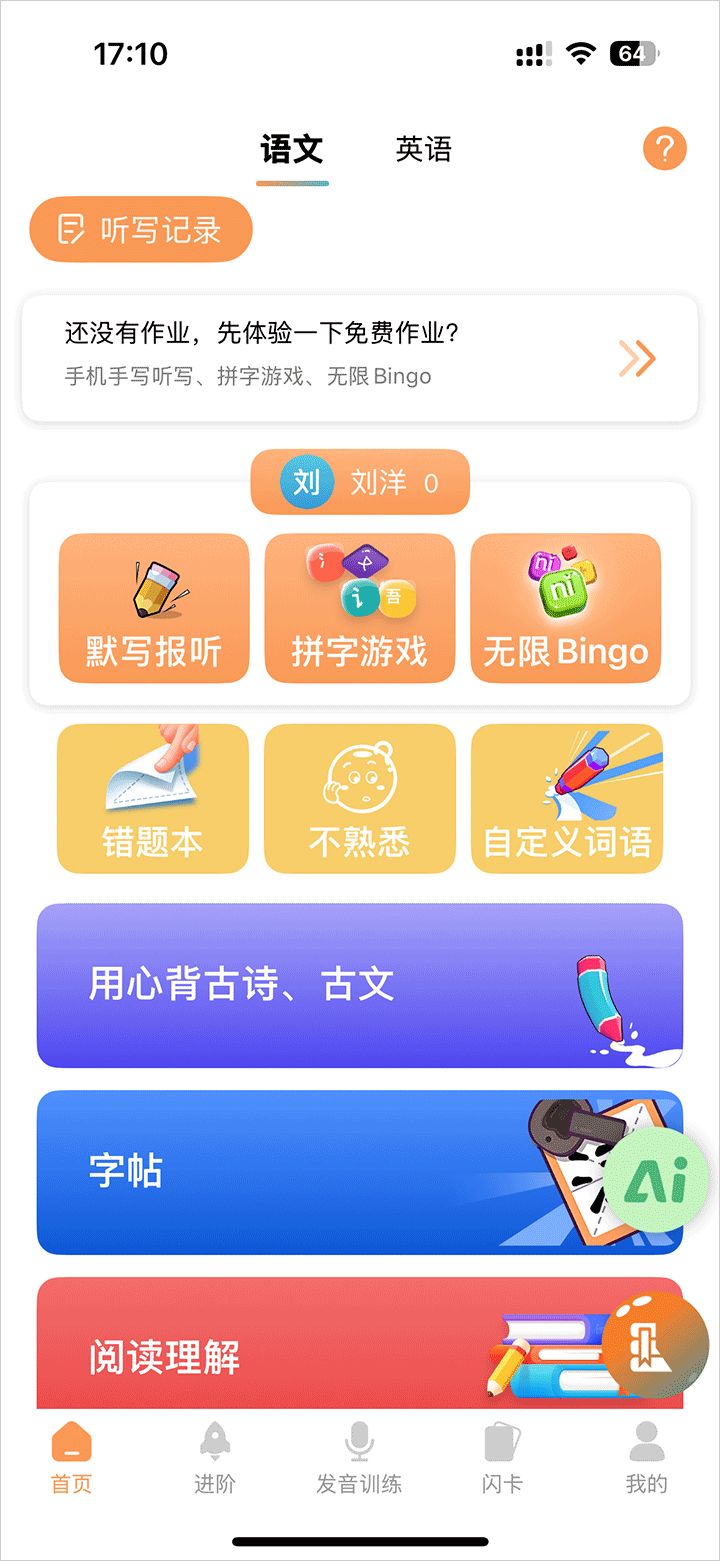 汉字闯关,各种比赛,学习不再枯燥!汉字手写识别、语音听写、拼字游戏、binggo游戏、默写报听、单词配对游戏,让听写变得轻松有趣!