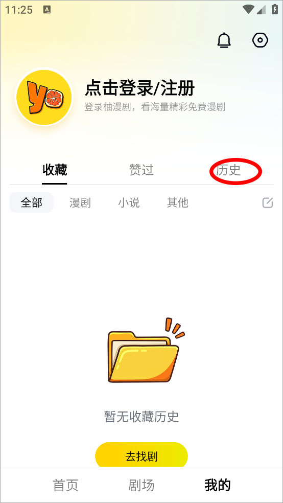 2、进入我的界面点击历史