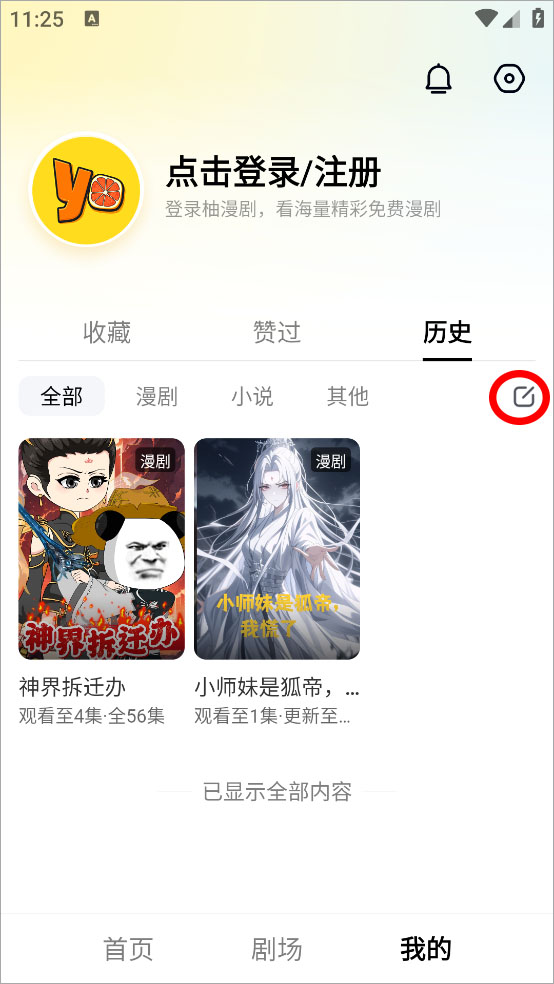 3、在历史栏目点击编辑按钮