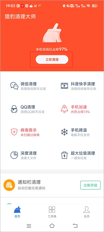猎豹清理大师app是一款专业的在线垃圾清理软件,能够让每一个用户都能在这里一站式清理各种垃圾,软件、下载、卸载残留、上网垃圾等等,将手机中不要的文件全都删除,释放更多的空间。完美支持微信QQ的清理,用户可以在这里一站式清楚聊天产生的垃圾,释放QQ和微信,让你的空间变得更充足。其中还有着全新的垃圾清理方式,能够一站式扫描,专为用户带来便捷的清理方式,垃圾清理效果提升3倍以上。