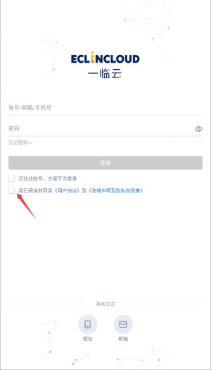 3、在登录页面勾选同意用户协议与隐私政策条款,进入身份验证步骤。