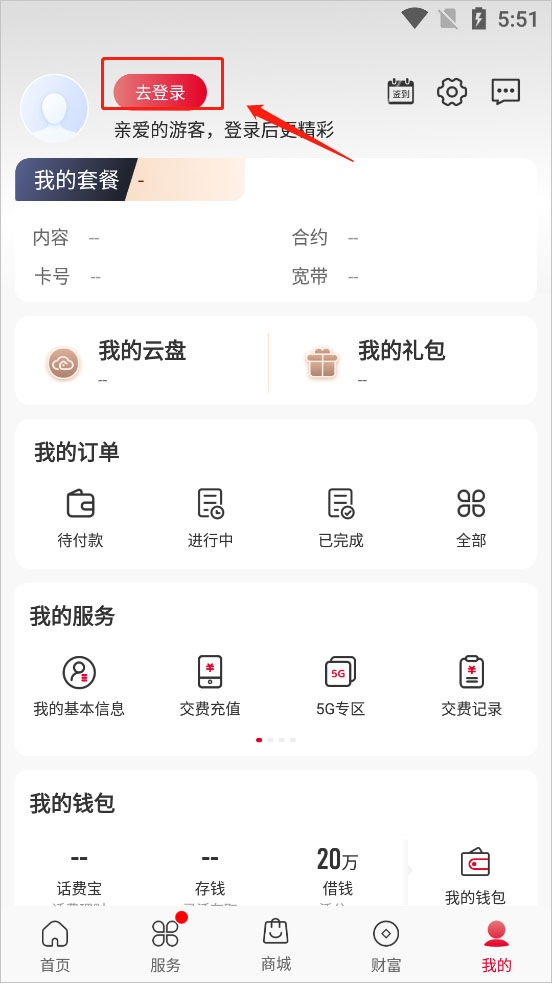 账户提醒:停机、挂失等账户异常问题,一键直达处理页面。