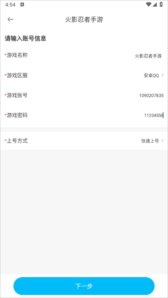 5、【一键上号】直接复制账号密码至您的游戏客户端进行登录