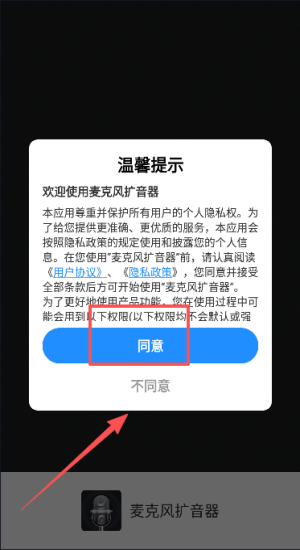 4、首次使用时会弹出温馨提示窗口,阅读用户协议与隐私政策后,点击同意按钮,即可进入软件主界面开始操作。