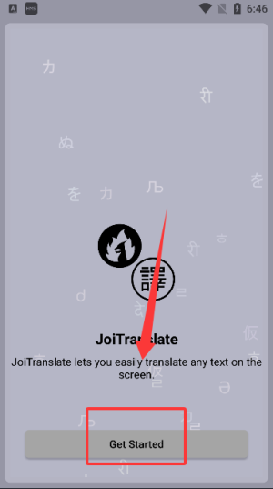 1、开启JoiTranslate,欢迎页轻触Get Started,彩色图标闪过,进入选语界面。