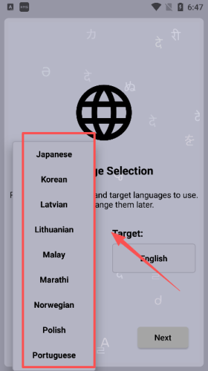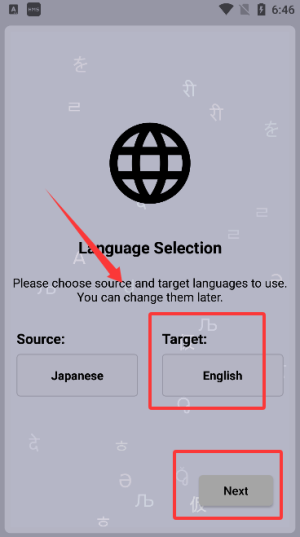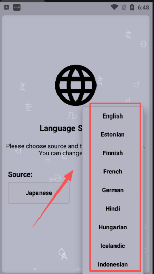 2、Source栏挑日文,Target栏切英文,六十种语言上下滑,随点随换无延迟。