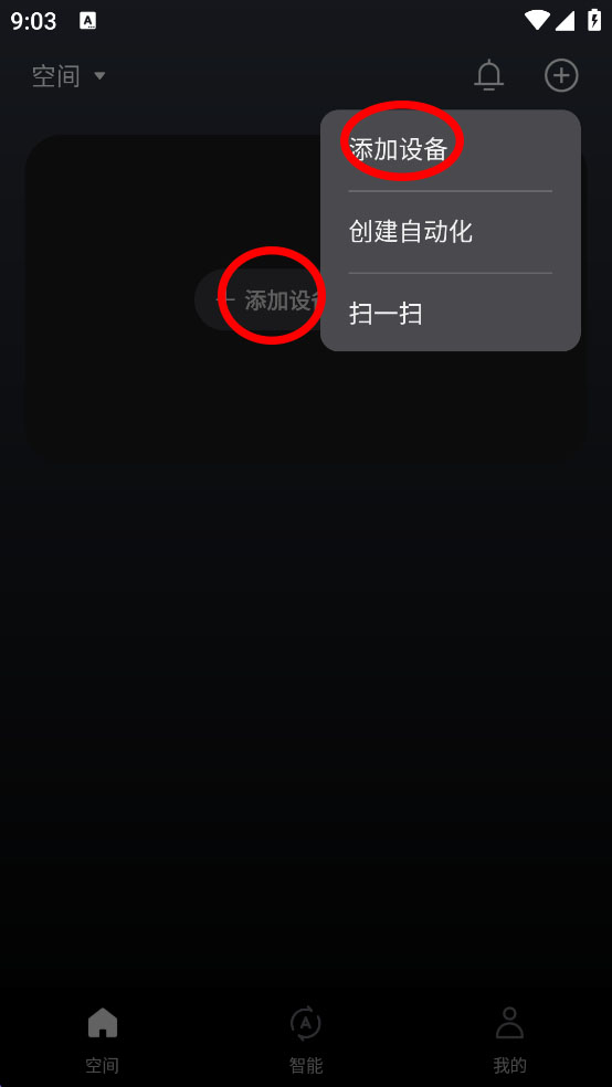1、打开软件进入首页如没有连接过直接点击首页添加设备,或点击右上角的【+】图标弹出窗口选择添加设备