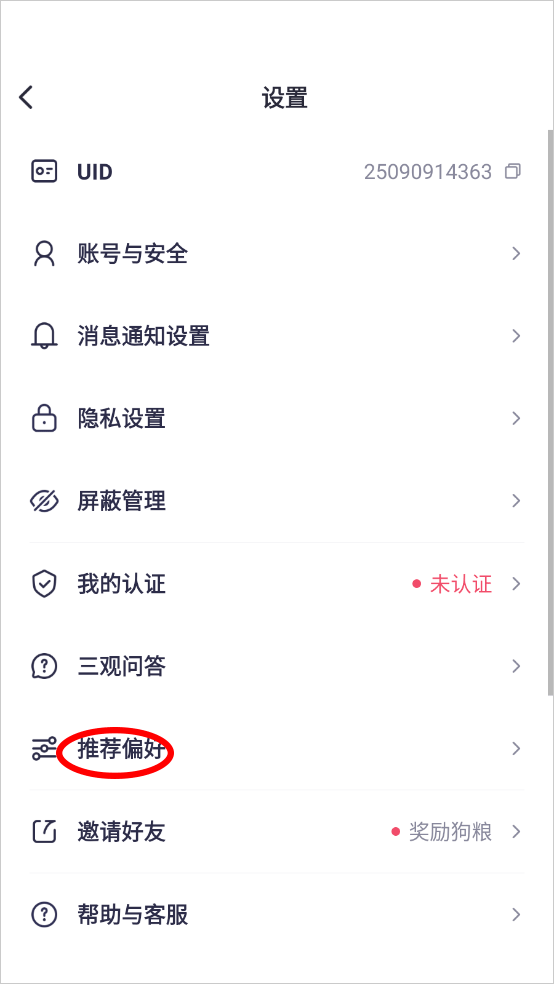 3、进入设置页面点击推荐偏好