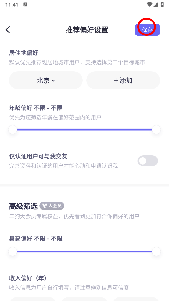 4、在推荐偏好中设置你喜欢的偏好点击右上角的保存即可