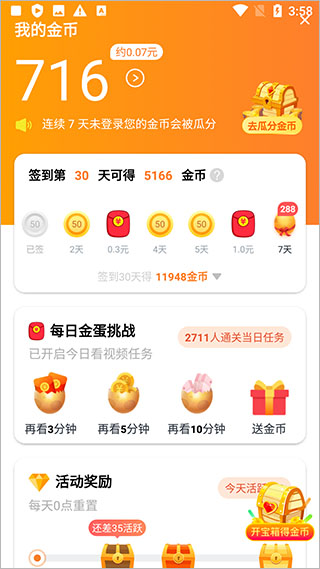 6、当积攒到一定金币以后,可以对金币进行提现赚钱。
