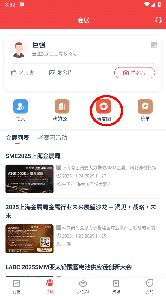1、打开掌上有色贵金属价格app进入首页点击下方会展栏目