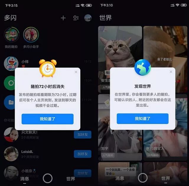 分享到“我的随拍”只有用户好友才能看到,并且有78小时有效期,三天过后,好友也无法再查看,只能自己查看。此外,分享到“我的随拍”视频会自动同步到抖音中的我的随拍中。而分享到“世界”的视频,则类似于抖音里的分享,陌生人都可以查看。简单说,世界里的视频,包含了陌生人的、有好友的,还有你可能认识的人的。