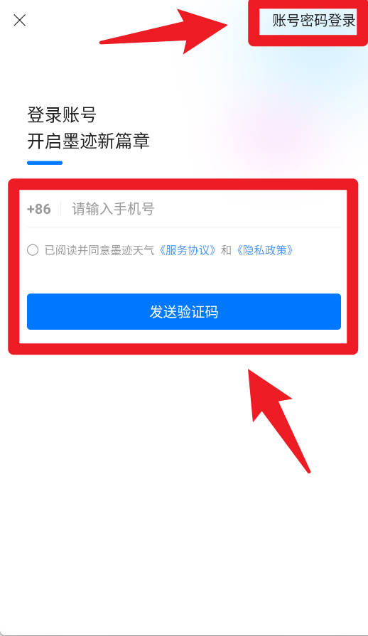 1、打开时,需要输入手机号获取验证码或使用账号密码方式完成登录。