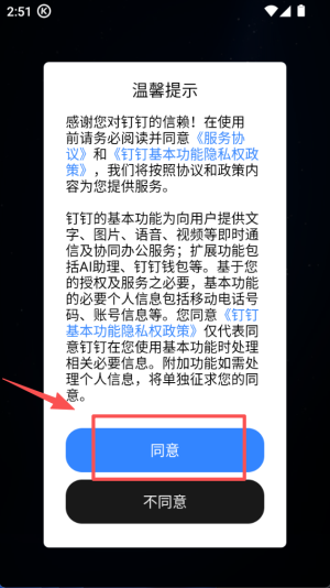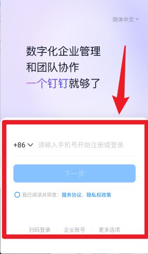 1、打开钉钉APP后,输入手机号码并点击“下一步”,即可开始注册或登录账号,需先勾选服务协议与隐私政策。