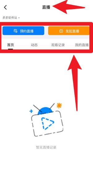 4、点击“直播”板块后,可选择预约直播、发起直播,查看自己的直播记录和直播动态等内容管理入口。