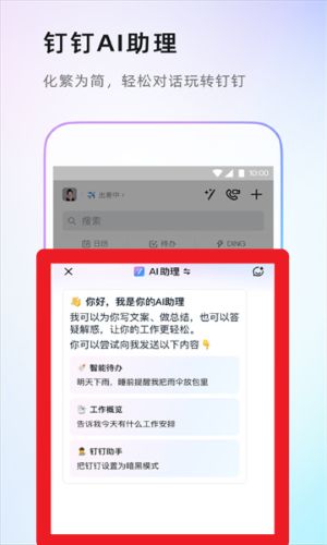 3、钉钉AI助手可辅助撰写文案、整理总结,并支持对话式操作,帮助用户高效完成日常办公事务。