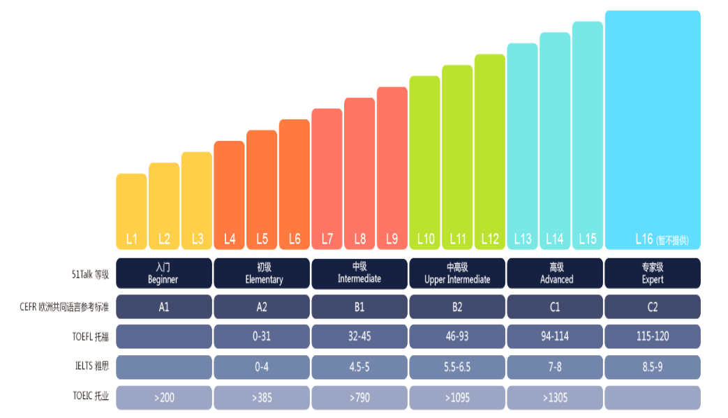 51Talk独有16级英语考评体系,籍此,我们可以为你,为每一名学员提供更有针对性的定制化教学。更有助于燃起你学习的动力与激情。