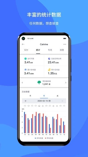 通过solarman app,用户可以轻松玩转自家庭屋顶的太阳能电站 —— 远程监控发电、用电、储能电池等实时及历史数据(日、周、年、总发电量);在任何时间、地点随时查看电站情况及收益,眼见到每一分投资的回报。