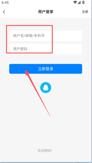 2、进入用户登录页面,在对应输入框分别填写用户名或邮箱或手机号、用户密码,完成后点击立即登录。