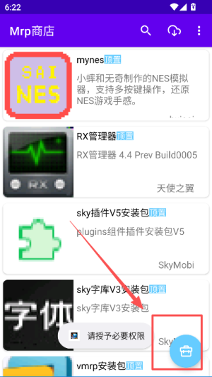 3、回到Mrp商店主界面,选择想要操作的应用,点击界面中的相关按钮,按提示授予必要权限。