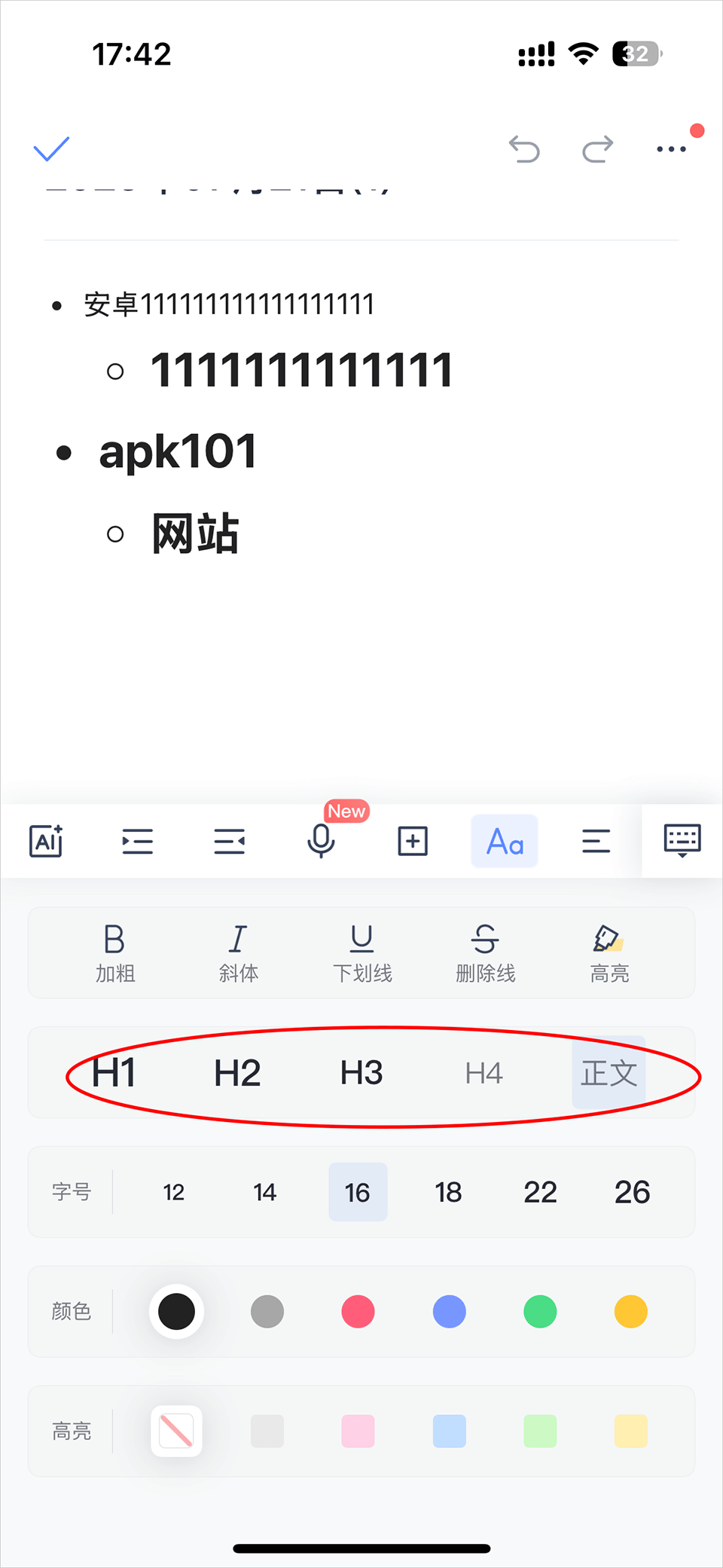 3、点击Aa图标将文中的内容按你的需求设置需要的标题