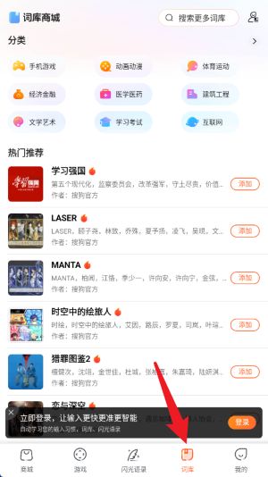 4、在“词库”页面可根据分类浏览热门词库,点击“添加”将词库导入到输入法中使用。