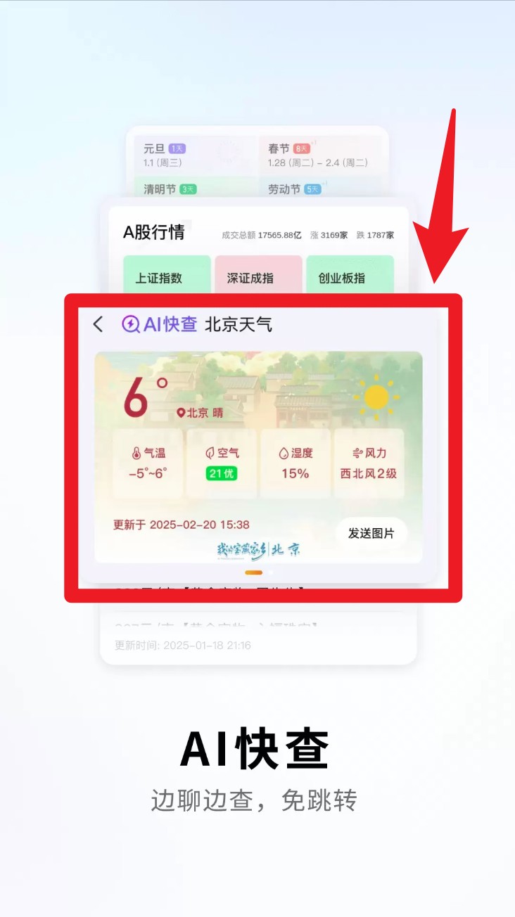 4. 启用AI快查功能后,打字时自动显示天气、快递、汇率等常用信息非常贴心。