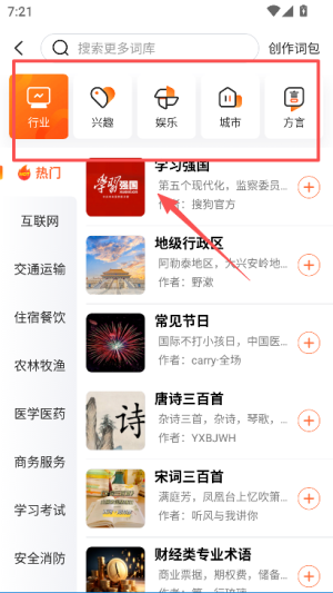 2、切换到词库商城页面,浏览分类板块,选择目标分类查找对应的词库。