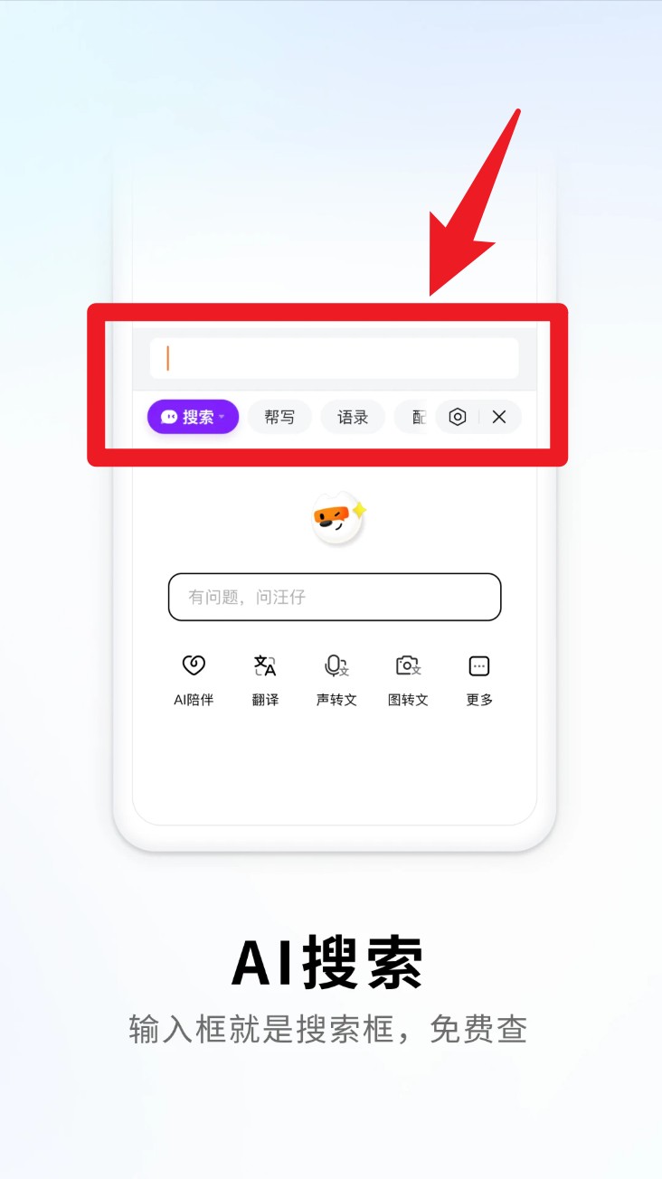 2. 在输入栏直接输入内容,底部会弹出“搜索、帮写、语录”等按钮,点击“搜索”即可进行智能查询,无需切换浏览器,省时又高效。