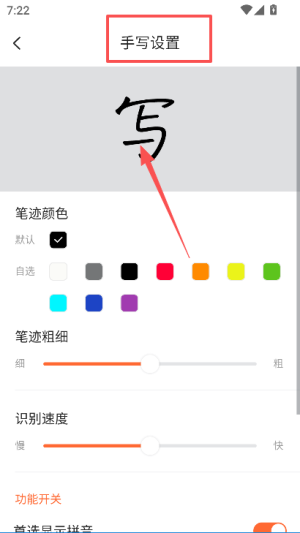 4、在输入设置完成后,进入手写设置页面,调整笔迹相关的配置参数。