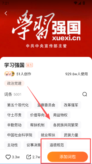 1、在词库分类页面,选择行业分类下的词库,点击添加按钮导入对应内容。