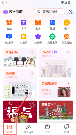 点击皮肤,为自己设置个性输入法皮肤和颜色