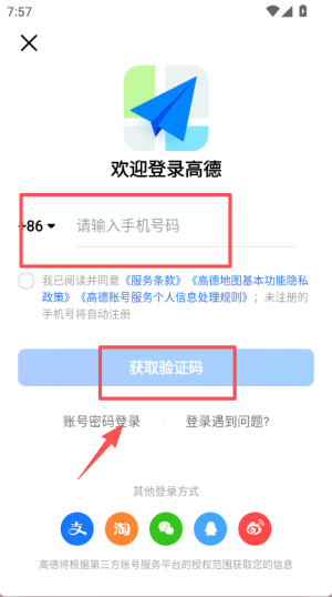 1、进入登录页面,在对应输入框填写手机号码,勾选协议后点击 “获取验证码”,即可进行登录验证。