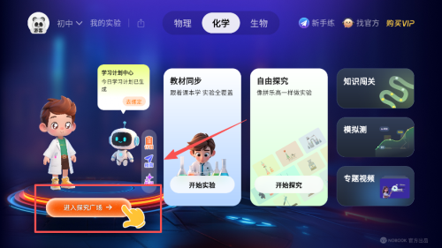4、登录后进入主界面,点击进入实验室按钮,可选择教材同步等板块开始实验学习。