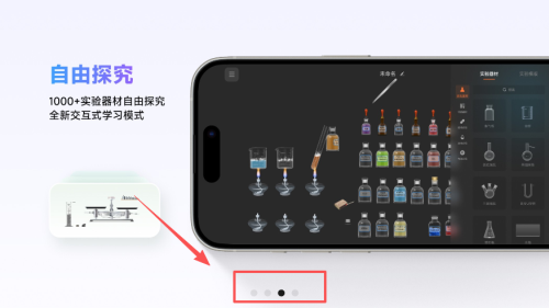 2、进入自由探究页面,滑动底部的功能按钮,可切换查看不同的实验相关内容。